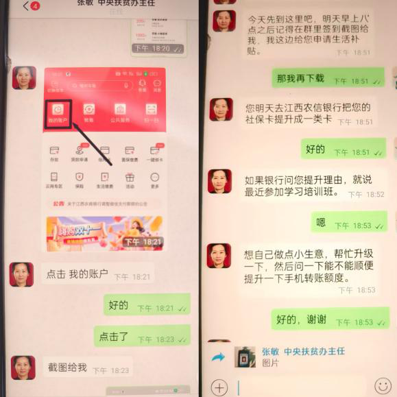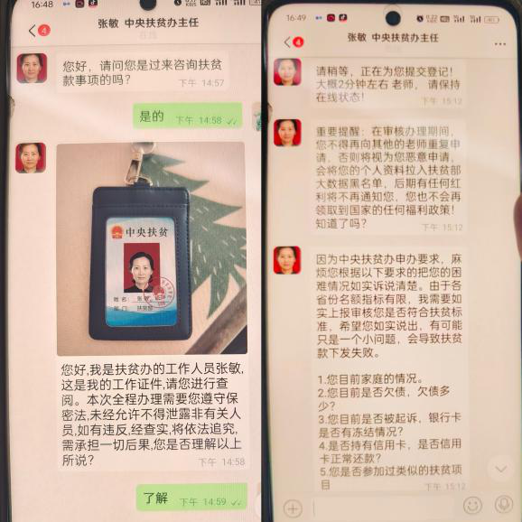 “您别急,慢慢说,我们一定帮您解决问题。”柜员一边安抚客户胡先生的情绪,一边迅速将情况汇报至支行长,支行长第一时间启动应急处置机制,同步上报总行运营管理部。在工作人员的耐心引导下,他才吐露实情:不久前他参加线下电商培训班后,被“讲师”拉入一个微信群,群内人员冒充“中央扶贫办主任”并出示了一张工作证件,以“扶贫专项资金发放”为诱饵,诱导他下载“惠及民生”APP。对方不仅以高额补助引诱,还威胁他不得告知他人。对方一步步骗取了他的银行卡信息、手机银行操作截图、身份证照片及微信收款码等全部隐私信息。