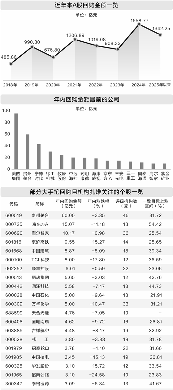 A股年内累计回购超1300亿元 超百家实施公司股价翻倍