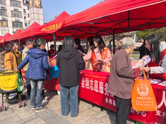 本站讯 2025年12月5日,我们迎来了第四十个国际志愿者日。为贯彻落实习近平总书记对社会工作的重要指示精神,积极传承“奉献、友爱、互助、进步”的志愿者核心价值观,进一步提高公众尤其是老年群体的金融风险防范意识,全南县金融服务中心在县河边街老城门广场开展了一场融合志愿服务与金融知识普及的非法集资风险防范宣传活动。