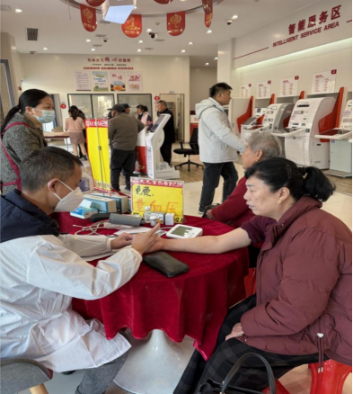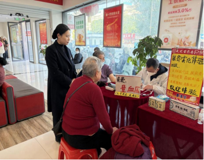 活动当天,网点大厅内暖意融融,彩旗与养生宣传展板相映成趣,洋溢着新春气氛与健康气息。为提升服务效率,网点设置“服务引导员”,进行分流引导,确保动线有序。特邀资深中医专家现场坐诊,提供脉诊、体质辨识、节气养生指导等专业服务,并针对不同客群的常见健康问题——如老年客户的“三高”调理、职场人士的肩颈养护等——提供个性化调理方案,用通俗的语言讲解养生知识以及饮食禁忌,让健康指导切实可行。
