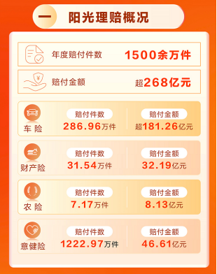 日前,阳光财险正式发布2025年理赔服务年报。数据显示,2025年全年,阳光财险累计赔付1500余万件,赔付金额超268亿元。其中,车险赔案286.96万件,赔付金额181.26亿元;财产险赔案31.54万件,赔付金额32.19亿元;农险赔案7.17万件,赔付金额8.13亿元;意健险赔案1222.97万件,赔付金额46.61亿元。