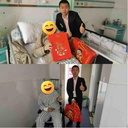 在医院的病房与走廊间,黄武江经理一行亲切探访了多位交通事故伤者。他们细致询问每位伤者的治疗进展与康复状况,耐心倾听其实际困难与需求,不仅送上精心准备的新春慰问礼品,更以专业的理赔知识现场答疑解惑,有效缓解了伤者及家属的焦虑情绪。从普通病房到骨科专区,从年迈卧床的老人到正在积极康复的年轻患者,慰问团队的足迹遍及多家医院的数十个病房,累计关怀伤者百余人。每一声真诚的问候、每一份温暖的礼包,都在寒冷冬日里传递出直抵人心的平安温度。
