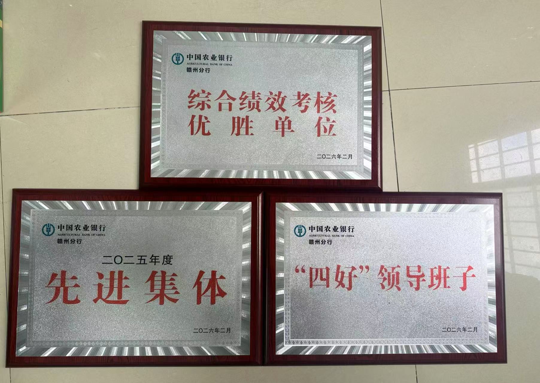本站讯 近日,在中国农业银行赣州分行召开的2025年党建和经营工作会上,大余县支行表现突出,一举荣获“综合绩效考核优胜单位”“二〇二五年度先进集体”“‘四好’领导班子”三项重要荣誉。这些成绩的取得,集中展现了大余农行在经营管理、服务地方、队伍建设等方面取得的扎实成效,也彰显了支行以高质量党建引领高质量发展的坚定决心与责任担当。