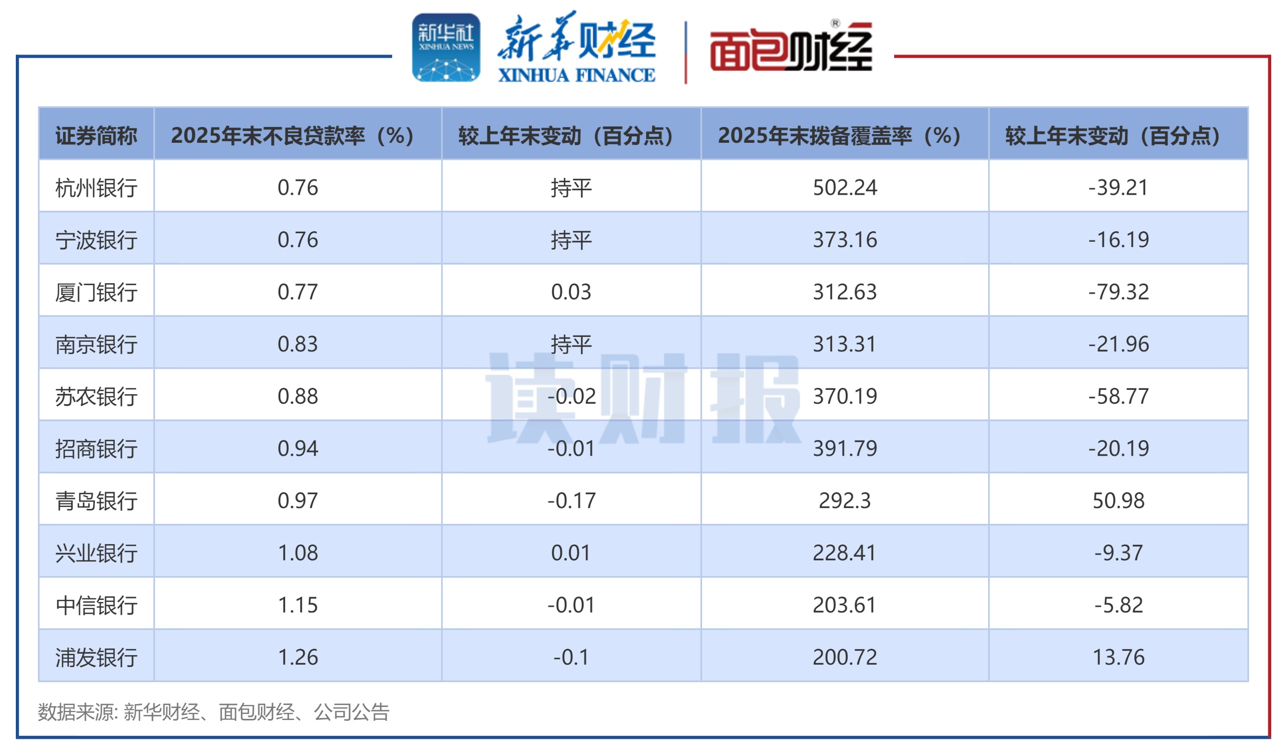 图3:截至2025年末已披露业绩快报的上市银行资产质量情况