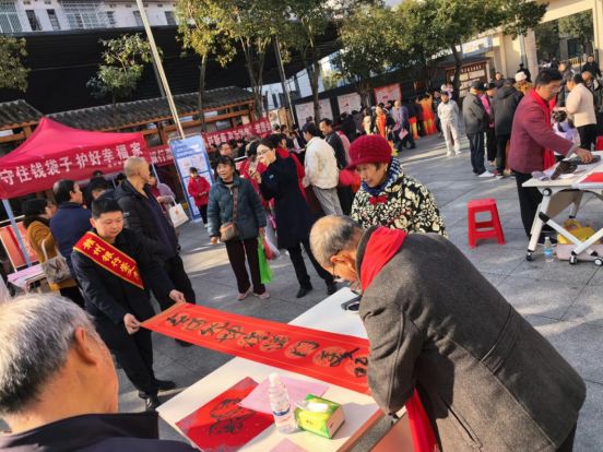 活动现场,红彤彤的春联纸铺满长桌,受邀而来的书法爱好者挥毫泼墨,笔走龙蛇间,“春满乾坤福满门,警惕高利守平安”“和顺一门有百福,远离非集享天伦”等特色春联新鲜出炉。这些春联既饱含“福旺财旺运气旺”的传统吉祥寓意,又巧妙融入“防范养老诈骗”“拒绝虚假投资”等防非宣传要点,让老年朋友们在领取新春祝福的同时,潜移默化接受金融安全熏陶。“这春联写得好,又吉祥又能提醒我们防骗,挂在家里又有面子又安心!”刚领到春联的张阿姨笑得合不拢嘴,当场就和老伙伴们讨论起春联里的安全提示。