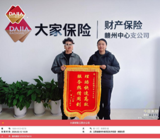 ——大家财险赣州中支高效暖心赔付获赠锦旗