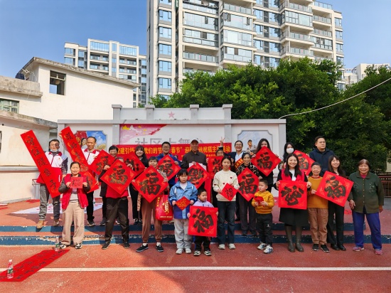 活动现场暖意融融、年味浓厚。特邀的书法家展纸挥毫,笔墨流转之间,一副副寓意吉祥的春联、一张张饱满圆润的“福”字跃然纸上,传递着诚挚的新春祝愿。居民们有序排队,接过翰墨飘香的祝福,脸上洋溢着喜悦的笑容。
