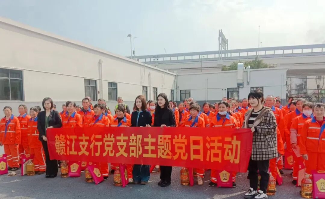 赣江支行党支部前往碧桂园生活服务集团股份有限公司赣州分公司,开展“致敬城市美容师”主题党日活动。活动中,支行党员志愿者与环卫工人亲切交谈,详细询问大家的工作强度、防寒保暖与生活保障情况,对他们不畏严寒、默默坚守,用汗水守护城市洁净的奉献精神致以崇高敬意。党员们将精心准备的慰问品逐一送到环卫工人手中,同时向工人们开展金融反诈知识宣传,用通俗易懂的语言讲解电信诈骗、虚假理财、冒充客服等常见骗局,提醒大家不轻信、不透露、不转账,守好辛苦钱、护住“钱袋子”。一句句暖心叮嘱、一份份真挚关怀,让现场洋溢着温馨祥和的节日氛围,切实把党组织的温暖与金融安全知识送到基层劳动者心坎上。