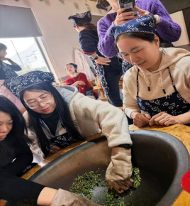 在生态茶园,女职工们身着统一工装,化身灵动的“采茶姑娘”。在茶农的专业指导下,大家手提竹篮,穿梭于青翠茶垄间,指尖翻飞采撷嫩芽,沉浸式体验春日采茶的乐趣。随后的制茶工坊里,大家紧跟师傅步伐,认真学习摊青、杀青、揉捻、烘干等传统工序。当亲手采摘的鲜叶化作杯中的清香,大家在一揉一捻中感悟了匠心坚守,在一呼一吸间收获了劳动喜悦。