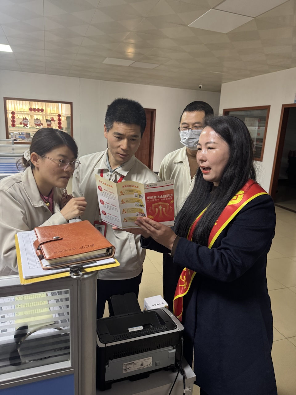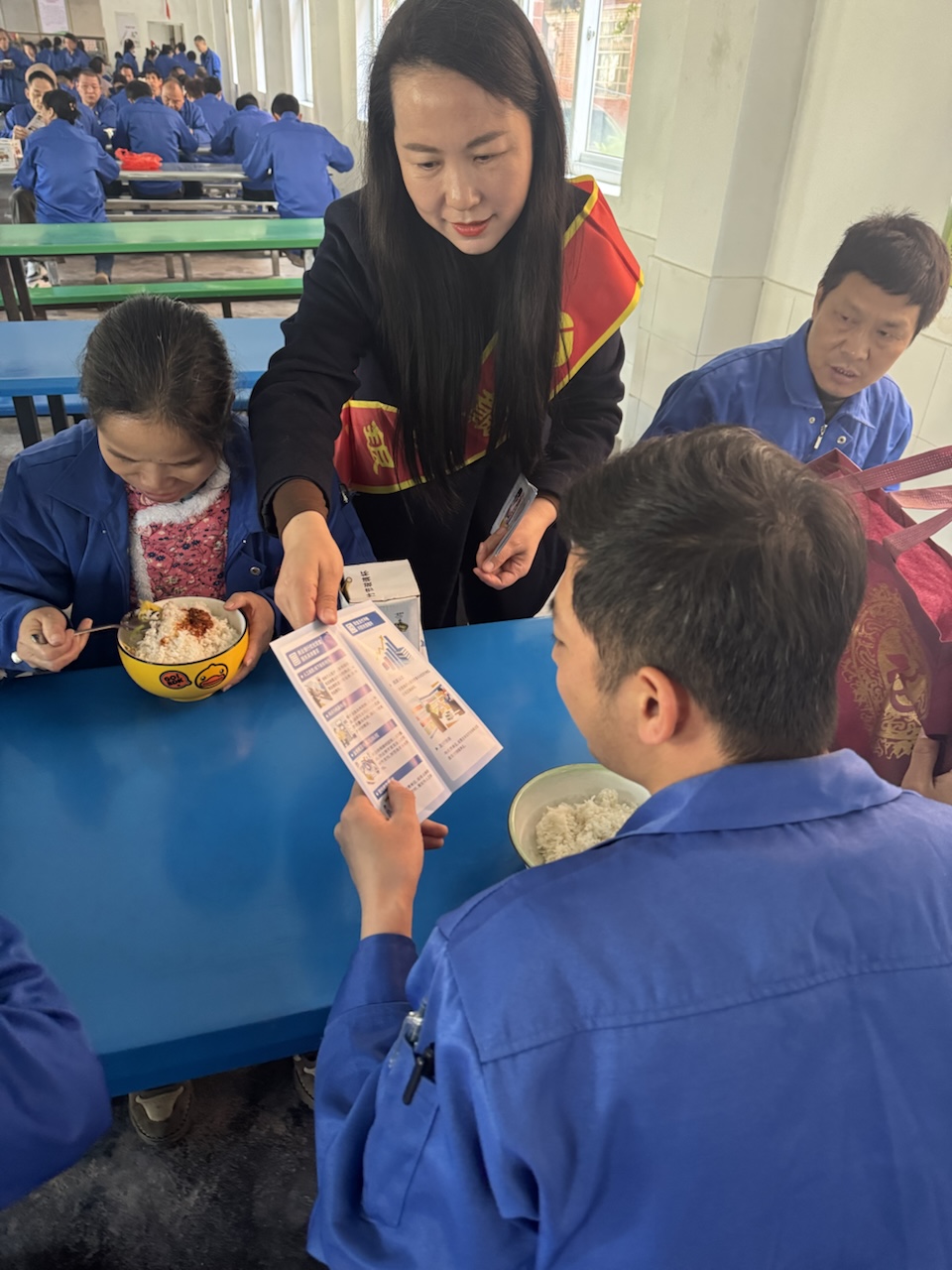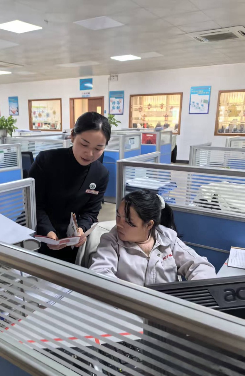 没有刻板的宣讲,没有生硬的说教,工作人员像拉家常一样,把金融知识送到工人师傅们身边。在企业食堂,他们利用员工用餐间隙,主动上前发放资料、答疑解惑;在办公区,他们结合员工实际需求,细致解读与工作生活息息相关的金融政策。