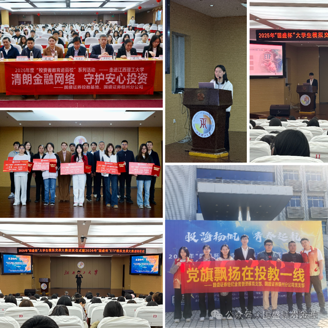 为践行“金融为民”理念,聚焦高校学生群体的认知特点与成长需求,切实提升其金融知识储备、风险识别能力与理性投资素养,有效推动投资者教育纳入国民教育体系,同时深入开展“3·15”投资者保护教育宣传专项活动,2026年3月15日,在江西证监局指导下,国盛证券投教基地联合江西理工大学经济管理学院、赣州市金融研究院成功举办了2025年“国盛杯”大学生模拟交易大赛颁奖仪式暨2026年“国盛杯”ETF模拟交易大赛启动仪式,覆盖近400名学生。公司经纪业务管理部党支部与赣州分公司党支部党员先锋带头参与,以“党建+投教”模式赋能青年成长,筑牢金融安全防线。